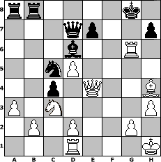 game notation in PGN-format [Event "CAISSA.COM IS DEAD TO ME!"] [Site "www.myChess.de"] [Date "2020.03.28"] [Round "1"] [White "martinus"] [Black "kalle"] [ECO "A57"] [WhitemyELO "1575"] [BlackmyELO "1648"] [Result "1-0"] [TimeControl "10/2592000"] [WhiteDays "30"] [BlackDays "30"] [MyChessNo "117684"] 1. d4 Nf6 2. c4 c5 3. d5 b5 4. cxb5 a6 5. Nc3 axb5 6. Nxb5 d6 7. Nf3 g6 8. Nc3 Bg7 9. e4 Ba6 10. Bxa6 Nxa6 11. O-O O-O 12. Re1 Nb4 13. Be3 Ng4 14. a3 Na6 15. Bg5 Qd7 16. h3 Ne5 17. Nxe5 Bxe5 18. f4 Bd4+ 19. Kh1 Rfb8 20. Qc2 f6 21. Bh4 c4 22. Rad1 Ba7 23. e5 fxe5 24. fxe5 dxe5 25. Rxe5 Bc5 26. Qe4 Bd6 27. Re6 Nc5 28. Rxg6+ 1-0 position notation in FEN-format rr4k1/3qp2p/3b2R1/2nP4/2p1Q2B/P1N4P/1P1P2P1/3R3K - - - 0 28 Captured white pieces: Captured black pieces: Click on a captured piece in order to display the desired move!