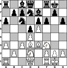 game notation in PGN-format [Event "Es wackelt selbst der Turm.Bei Regen u. bei Sturm"] [Site "www.myChess.de"] [Date "2017.11.20"] [Round "1"] [White "alpacino"] [Black "Rabenvogel"] [ECO "D02"] [WhitemyELO "1331"] [BlackmyELO "1549"] [Result "1-0"] [TimeControl "10/1728000"] [WhiteDays "20"] [BlackDays "00"] [MyChessNo "110420"] 1. d4 d5 2. Nf3 Nc6 3. c3 e6 4. e3 a6 5. Bd3 h6 6. e4 Nf6 7. e5 Nd7 8. Be3 Be7 9. Nbd2 O-O 10. a3 f6 11. O-O 1-0 position notation in FEN-format r1bq1rk1/1ppnb1p1/p1n1pp1p/3pP3/3P4/P1PBBN2/1P1N1PPP/R2Q1RK1 - - - 1 11 Captured white pieces: Captured black pieces: Click on a captured piece in order to display the desired move!
