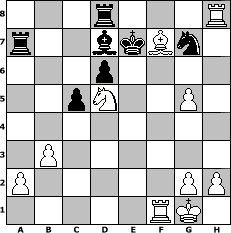 game notation in PGN-format [Event "Herbst 2024"] [Site "www.myChess.de"] [Date "2024.11.17"] [Round "1"] [White "Ziegert"] [Black "kalle"] [ECO "B70"] [WhitemyELO "2033"] [BlackmyELO "1611"] [Result "1-0"] [TimeControl "10/2592000"] [WhiteDays "017"] [BlackDays "114"] [MyChessNo "132568"] 1. e4 c5 2. Nf3 d6 3. d4 cxd4 4. Nxd4 Nf6 5. Nc3 g6 6. Be2 Bg7 7. Be3 Nc6 8. O-O O-O 9. Qd2 a6 10. Nxc6 bxc6 11. Rad1 Bb7 12. Bh6 c5 13. f3 Qc7 14. Qf4 Nh5 15. Qd2 Bc6 16. b3 a5 17. Bxg7 Nxg7 18. Bc4 a4 19. Qh6 axb3 20. cxb3 e6 21. Rd3 Rfd8 22. f4 f5 23. Rh3 Nh5 24. Bxe6+ Kh8 25. exf5 Qg7 26. Qg5 Qf6 27. fxg6 Qxg6 28. Bf5 Qxg5 29. fxg5 Ng7 30. Bxh7 Bd7 31. Rh6 Ra7 32. Bg6+ Kg8 33. Bf7+ Kf8 34. Rh8+ Ke7 35. Nd5# 1-0 position notation in FEN-format 3r3R/r2bkBn1/3p4/2pN2P1/8/1P6/P5PP/5RK1 - - - 10 35 Captured white pieces: Captured black pieces: Click on a captured piece in order to display the desired move!