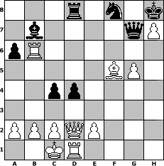 game notation in PGN-format [Event "CAISSA.COM IS DEAD TO ME!"] [Site "www.myChess.de"] [Date "2020.03.28"] [Round "2"] [White "kalle"] [Black "iamnothere"] [ECO "B02"] [WhitemyELO "1648"] [BlackmyELO "1447"] [Result "1-0"] [TimeControl "10/2592000"] [WhiteDays "30"] [BlackDays "30"] [MyChessNo "117763"] 1. e4 Nf6 2. Nc3 d6 3. d4 Nbd7 4. Nf3 e6 5. Bd3 Be7 6. Bf4 O-O 7. Qd2 Re8 8. O-O-O a6 9. e5 dxe5 10. dxe5 Nd5 11. Nxd5 exd5 12. h4 Nf8 13. Ng5 f5 14. exf6 Bxf6 15. h5 Bxg5 16. Bxg5 Qd7 17. h6 g6 18. Bf6 Re6 19. Bg7 b6 20. f4 Bb7 21. f5 Re7 22. fxg6 Rxg7 23. hxg7 Qxg7 24. gxh7+ Kh8 25. g4 c5 26. g5 d4 27. Rh6 Rc8 28. Rf6 c4 29. Bf5 Rd8 30. Rxb6 1-0 position notation in FEN-format 3r1n1k/1b4qP/pR6/5BP1/2pp4/8/PPPQP3/2KR4 - - - 0 30 Captured white pieces: Captured black pieces: Click on a captured piece in order to display the desired move!