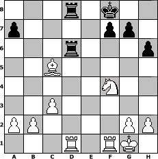 game notation in PGN-format [Event "YOUR LAST BREATH"] [Site "www.myChess.de"] [Date "2019.11.17"] [Round "1"] [White "sprinterde"] [Black "skuehnel"] [ECO "C36"] [WhitemyELO "1699"] [BlackmyELO "1291"] [Result "1-0"] [TimeControl "10/3456000"] [WhiteDays "40"] [BlackDays "38"] [MyChessNo "116315"] 1. e4 e5 2. f4 exf4 3. Nf3 d5 4. Nc3 Nf6 5. exd5 Bc5 6. d4 Bg4 7. dxc5 O-O 8. Be2 Nbd7 9. O-O Bxf3 10. Bxf3 Nxc5 11. Bxf4 Qe7 12. d6 cxd6 13. Bxd6 Qd7 14. Bxc5 Qxd1 15. Raxd1 Rfe8 16. Bd4 h6 17. Bxb7 Rab8 18. Bc6 Re6 19. Bd5 Nxd5 20. Nxd5 Rd8 21. Nc3 Red6 22. Ne2 Kf8 23. c3 Re8 24. Nf4 Red8 25. Bc5 1-0 position notation in FEN-format 3r1k2/p4pp1/3r3p/2B5/5N2/2P5/PP4PP/3R1RK1 - - - 4 25 Captured white pieces: Captured black pieces: Click on a captured piece in order to display the desired move!