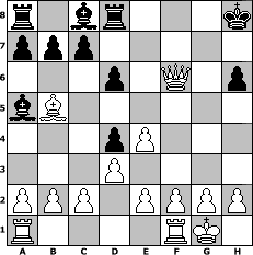 game notation in PGN-format [Event "Novemberturnier"] [Site "www.myChess.de"] [Date "2004.11.04"] [Round "1"] [White "Wormatia08"] [Black "Falcor"] [ECO "C65"] [WhitemyELO "1541"] [BlackmyELO "1215"] [Result "1-0"] [TimeControl "10/2592000"] [WhiteDays "58"] [BlackDays "47"] [MyChessNo "7773"] 1. e4 e5 2. Nf3 Nc6 3. Bb5 Nf6 4. Nc3 Bb4 5. d3 O-O 6. Bg5 h6 7. Bh4 d6 8. O-O Nd4 9. Nxd4 exd4 10. Nd5 Ba5 11. Nxf6+ Kh8 12. Qf3 gxf6 13. Bxf6+ Kh7 14. Bxd8 Rxd8 15. Qxf7+ Kh8 16. Qf6+ 1-0 position notation in FEN-format r1br3k/ppp5/3p1Q1p/bB6/3pP3/3P4/PPP1PPPP/R4RK1 - - - 2 16 Captured white pieces: Captured black pieces: Click on a captured piece in order to display the desired move!