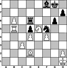 game notation in PGN-format [Event "LISA OPEN #1"] [Site "www.myChess.de"] [Date "2017.09.02"] [Round "1"] [White "sprinterde"] [Black "Winston"] [ECO "B21"] [WhitemyELO "1647"] [BlackmyELO "1431"] [Result "1-0"] [TimeControl "10/1728000"] [WhiteDays "19"] [BlackDays "20"] [MyChessNo "109421"] 1. e4 c5 2. f4 g6 3. Nf3 a6 4. Bc4 Nc6 5. a3 e6 6. O-O d6 7. c3 Nge7 8. d4 d5 9. exd5 exd5 10. Ba2 c4 11. Re1 Bg7 12. Nbd2 Bf5 13. b4 b5 14. Ne5 O-O 15. Ndf3 Rc8 16. Nxc6 Rxc6 17. Ne5 Rb6 18. Qe2 Re8 19. Bb1 Qc8 20. Bxf5 Nxf5 21. Qf2 Rbe6 22. Qf3 Qb7 23. g4 Nd6 24. g5 Nf5 25. Bd2 f6 26. gxf6 Bxf6 27. Kh1 R8e7 28. a4 bxa4 29. Rxa4 Bg7 30. Ra5 Rd6 31. Rea1 Ree6 32. Nxc4 Rd7 33. Ne5 Rd8 34. Nd3 Qe7 35. Ne5 Bh6 36. Rxa6 Rxa6 37. Rxa6 Qb7 38. Ra5 Bf8 39. Qd3 Ra8 40. Qb5 Qxb5 41. Rxb5 Ne7 42. Ra5 Rd8 43. b5 Nf5 44. b6 Rd6 45. Rb5 1-0 position notation in FEN-format 5bk1/7p/1P1r2p1/1R1pNn2/3P1P2/2P5/3B3P/7K - - - 2 45 Captured white pieces: Captured black pieces: Click on a captured piece in order to display the desired move!