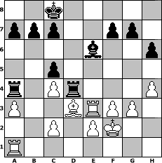 game notation in PGN-format [Event "Zur Fastenzeit"] [Site "www.myChess.de"] [Date "2018.03.15"] [Round "1"] [White "UPS"] [Black "muetoe"] [ECO "C45"] [WhitemyELO "1685"] [BlackmyELO "1934"] [Result "0-1"] [TimeControl "10/3456000"] [WhiteDays "22"] [BlackDays "39"] [MyChessNo "111736"] 1. e4 e5 2. Nf3 Nc6 3. d4 exd4 4. Nxd4 Qh4 5. Nc3 Bb4 6. Qd3 Nf6 7. g3 Qxe4+ 8. Qxe4+ Nxe4 9. Nxc6 dxc6 10. Bd2 Bxc3 11. Bxc3 Nxc3 12. bxc3 Be6 13. a3 O-O-O 14. Bd3 Bg4 15. O-O Rd5 16. c4 Ra5 17. Rfe1 h6 18. Kg2 Rd8 19. Re3 Be6 20. f3 c5 21. h4 Rd4 22. Kf2 Ra4 0-1 position notation in FEN-format 2k5/ppp2pp1/4b2p/2p5/r1Pr3P/P2BRPP1/2P1PK2/R7 - - - 3 23 Captured white pieces: ![]() ![]() ![]() ![]() ![]() ![]() ![]() ![]() ![]() ![]() ![]() ![]() ![]() ![]() ![]() Captured black pieces: ![]() ![]() ![]() ![]() ![]() ![]() ![]() ![]() ![]() ![]() ![]() ![]() ![]() ![]() ![]() Click on a captured piece in order to display the desired move!