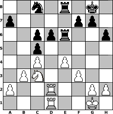 game notation in PGN-format [Event "Fruehlingsgefuehle"] [Site "www.myChess.de"] [Date "2007.03.30"] [Round "1"] [White "Nightflight"] [Black "ujack1961"] [ECO "C65"] [WhitemyELO "1691"] [BlackmyELO "1861"] [Result "0-1"] [TimeControl "10/864000"] [WhiteDays "00"] [BlackDays "30"] [MyChessNo "33854"] 1. e4 e5 2. Nf3 Nc6 3. Bb5 Nf6 4. Nc3 Be7 5. O-O d6 6. d4 exd4 7. Nxd4 Bd7 8. Bxc6 Bxc6 9. Nxc6 bxc6 10. Re1 O-O 11. Qf3 Qd7 12. Bf4 Qg4 13. Qxg4 Nxg4 14. f3 Ne5 15. Ne2 Bf6 16. Rad1 Ng6 17. Bc1 c5 18. b3 Rfe8 19. Bd2 Re6 20. Ba5 c6 21. c4 Rae8 22. Bc3 Bxc3 23. Nxc3 Ne7 24. Re2 Nc8 25. Red2 h6 0-1 position notation in FEN-format 2n1r1k1/p4pp1/2ppr2p/2p5/2P1P3/1PN2P2/P2R2PP/3R2K1 - - - 0 26 Captured white pieces: Captured black pieces: Click on a captured piece in order to display the desired move!