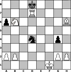 game notation in PGN-format [Event "Prätorianer"] [Site "www.myChess.de"] [Date "2023.01.04"] [Round "1"] [White "hsvler"] [Black "wolni55"] [ECO "C36"] [WhitemyELO "1380"] [BlackmyELO "1462"] [Result "1-0"] [TimeControl "10/1728000"] [WhiteDays "20"] [BlackDays "20"] [MyChessNo "128911"] 1. e4 e5 2. f4 exf4 3. Nf3 d5 4. exd5 Qxd5 5. Nc3 Qd8 6. Be2 g5 7. O-O a6 8. d4 Bf5 9. Re1 Be7 10. Bd3 Bxd3 11. Qxd3 Nf6 12. Nxg5 h6 13. Nge4 Nxe4 14. Rxe4 Qd6 15. Bxf4 Qg6 16. Rae1 Kd8 17. Rxe7 Nd7 18. Qxg6 fxg6 19. Rg7 g5 20. Ree7 Nf6 21. Bxc7+ Kc8 22. Be5 Ng4 23. Rc7+ Kd8 24. Rgd7+ Ke8 25. Bxh8 Rd8 26. Rxd8+ Kxd8 27. Rxb7 Ne3 28. Bg7 Nxc2 29. Bxh6 g4 30. Nd5 Nxd4 31. Nb6 Ne2+ 32. Kf1 Nd4 33. Rd7+ 1-0 position notation in FEN-format 3k4/3R4/pN5B/8/3n2p1/8/PP4PP/5K2 - - - 5 33 Captured white pieces: Captured black pieces: Click on a captured piece in order to display the desired move!