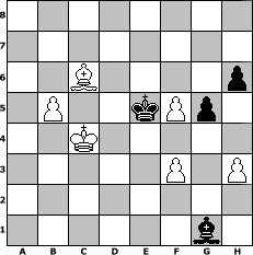 game notation in PGN-format [Event "1.a3 Anderssens Er"] [Site "www.myChess.de"] [Date "2005.04.08"] [Round "1"] [White "Chelly"] [Black "Juliette2103"] [ECO "A00"] [WhitemyELO "1777"] [BlackmyELO "1871"] [Result "1/2-1/2"] [TimeControl "10/1728000"] [WhiteDays "20"] [BlackDays "20"] [MyChessNo "11937"] 1. a3 g6 2. e4 c5 3. Nc3 d6 4. Bc4 Bg7 5. Nf3 Nf6 6. d3 Nc6 7. Ne2 Bg4 8. Nd2 d5 9. exd5 Nxd5 10. Ne4 Bxe2 11. Qxe2 Nd4 12. Qd1 b5 13. Ba2 e6 14. c3 Nf5 15. Nxc5 O-O 16. O-O Be5 17. d4 Bc7 18. Qg4 Qd6 19. Qh3 Nf4 20. Bxf4 Qxf4 21. Rad1 Rfe8 22. Rfe1 a6 23. Ne4 Kg7 24. g3 Qh6 25. Qxh6+ Nxh6 26. Nc5 Bb6 27. Nd7 Ba7 28. Nc5 Bb6 29. h3 Ra7 30. g4 Ng8 31. Nd3 Ne7 32. Ne5 Bc7 33. Kg2 h6 34. Re2 g5 35. Rde1 Bb8 36. Nd3 Ng6 37. Bd5 Bd6 38. Be4 Nh4+ 39. Kf1 a5 40. d5 exd5 41. Bxd5 Rc8 42. Re8 Rac7 43. Rxc8 Rxc8 44. Bb7 Rb8 45. Bc6 Ng6 46. Re8 Rb6 47. Be4 Nf4 48. Nxf4 Bxf4 49. Bd3 Bc1 50. Re2 Kf6 51. Rc2 Bf4 52. b4 axb4 53. cxb4 Bd6 54. Ke2 Ra6 55. Rc3 Rb6 56. Kf3 Ke5 57. Be4 Kf6 58. Rc6 Rxc6 59. Bxc6 Be5 60. Bxb5 Bb2 61. Bc4 Bxa3 62. b5 Bc5 63. Bd5 Ke7 64. Ke2 f6 65. f3 Kd6 66. Bc6 Ke5 67. Kd3 f5 68. Kc4 Bg1 69. gxf5 1/2-1/2 position notation in FEN-format 8/8/2B4p/1P2kPp1/2K5/5P1P/8/6b1 - - - 0 69 Captured white pieces: Captured black pieces: Click on a captured piece in order to display the desired move!