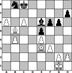 game notation in PGN-format [Event "2. Nordsachsenturnier"] [Site "www.myChess.de"] [Date "2015.10.22"] [Round "1"] [White "kalle"] [Black "beowulf"] [ECO "B38"] [WhitemyELO "1599"] [BlackmyELO "1361"] [Result "1-0"] [TimeControl "10/1728000"] [WhiteDays "63"] [BlackDays "72"] [MyChessNo "100890"] 1. e4 c5 2. Nf3 Nc6 3. d4 cxd4 4. Nxd4 g6 5. c4 Bg7 6. Be3 d6 7. Nc3 Nxd4 8. Bxd4 Nf6 9. Be2 O-O 10. O-O e5 11. Be3 b6 12. Qc2 Be6 13. f3 Nd7 14. Rfd1 Qc7 15. Nb5 Qc6 16. Rxd6 Qb7 17. b3 a6 18. Nc3 Rfd8 19. Rad1 Bf8 20. R6d2 Be7 21. Nd5 Nf6 22. Nxe7+ Qxe7 23. Bxb6 Rxd2 24. Qxd2 Nd7 25. Be3 f6 26. Qd6 Qe8 27. b4 Kf7 28. a4 Qe7 29. a5 Qxd6 30. Rxd6 Ke7 31. c5 Nb8 32. Rb6 Nd7 33. Rxa6 Rxa6 34. Bxa6 Nb8 35. Bb5 Kd8 36. c6 Kc8 37. a6 1-0 position notation in FEN-format 1nk5/7p/P1P1bpp1/1B2p3/1P2P3/4BP2/6PP/6K1 - - - 0 37 Captured white pieces: Captured black pieces: Click on a captured piece in order to display the desired move!