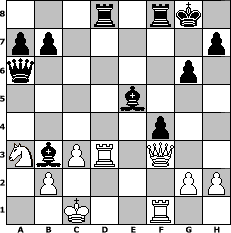 game notation in PGN-format [Event "Christmas Chess"] [Site "www.myChess.de"] [Date "2005.12.07"] [Round "1"] [White "Copperfield"] [Black "romain63"] [ECO "B20"] [WhitemyELO "1500"] [BlackmyELO "1650"] [Result "0-1"] [TimeControl "10/2592000"] [WhiteDays "62"] [BlackDays "90"] [MyChessNo "20457"] 1. e4 c5 2. Bc4 Nc6 3. Nf3 g6 4. d3 Bg7 5. Bxf7+ Kxf7 6. Ng5+ Ke8 7. Qf3 Nf6 8. Be3 d6 9. c3 Ne5 10. Qe2 Nf7 11. Nxf7 Kxf7 12. d4 cxd4 13. Bxd4 Rf8 14. Nd2 e5 15. Be3 Ng4 16. O-O-O Be6 17. Nc4 Qc7 18. Nxd6+ Kg8 19. f4 Nxe3 20. Qxe3 exf4 21. Qf3 Bxa2 22. Rhf1 Bb3 23. Rd3 Rad8 24. e5 Bxe5 25. Nb5 Qa5 26. Na3 Qa6 0-1 position notation in FEN-format 3r1rk1/pp5p/q5p1/4b3/5p2/NbPR1Q2/1P4PP/2K2R2 - - - 4 27 Captured white pieces: Captured black pieces: Click on a captured piece in order to display the desired move!