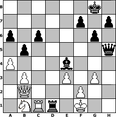 game notation in PGN-format [Event "8. Wikinger-Klubmeisterschaft"] [Site "www.myChess.de"] [Date "2012.08.01"] [Round "1"] [White "Seneca"] [Black "bane"] [ECO "E00"] [WhitemyELO "1428"] [BlackmyELO "1945"] [Result "0-1"] [TimeControl "10/1728000"] [WhiteDays "20"] [BlackDays "01"] [MyChessNo "83077"] 1. d4 Nf6 2. c4 e6 3. e3 g6 4. a3 Nc6 5. Bd3 Bg7 6. Nf3 O-O 7. O-O d5 8. b3 e5 9. dxe5 Ng4 10. Bb2 Ncxe5 11. Nxe5 Nxe5 12. Bxe5 Bxe5 13. Ra2 Be6 14. Rc2 dxc4 15. Bxc4 Bf5 16. Rd2 Qe7 17. Qe2 c6 18. Rc1 Rfd8 19. Rxd8+ Rxd8 20. a4 a6 21. Rd1 b5 22. Bd3 Bxh2+ 23. Kxh2 Qd6+ 24. g3 Bxd3 25. Qb2 Qc5 26. Rc1 Qh5+ 27. Kg2 Be4+ 28. Kf1 Rd1+ 0-1 position notation in FEN-format 6k1/5p1p/p1p3p1/1p5q/P3b3/1P2P1P1/1Q3P2/1NRr1K2 - - - 8 29 Captured white pieces: Captured black pieces: Click on a captured piece in order to display the desired move!