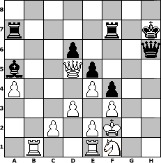 game notation in PGN-format [Event "Schach im Mittelalter: Tugend der Ritter"] [Site "www.myChess.de"] [Date "2016.12.17"] [Round "1"] [White "muetoe"] [Black "Erich"] [ECO "C65"] [WhitemyELO "1977"] [BlackmyELO "2117"] [Result "0-1"] [TimeControl "10/2592000"] [WhiteDays "106"] [BlackDays "120"] [MyChessNo "106019"] 1. e4 e5 2. Nf3 Nc6 3. Bb5 Nf6 4. d3 d6 5. Bxc6+ bxc6 6. h3 Be7 7. Nbd2 O-O 8. a3 Nd7 9. O-O a5 10. a4 Nb6 11. Re1 c5 12. Nf1 f5 13. b3 f4 14. Bb2 Qe8 15. Qd2 h5 16. Bc3 g5 17. N3h2 g4 18. hxg4 hxg4 19. Bxa5 Qg6 20. b4 cxb4 21. Bxb6 cxb6 22. Qxb4 g3 23. Nf3 Bg4 24. N1d2 Qh6 25. Qxb6 Bd8 26. Qb3+ Rf7 27. Rab1 Ba5 28. Qd5 Raa7 29. Nf1 Bxf3 30. gxf3 gxf2+ 31. Kxf2 Kh7 0-1 position notation in FEN-format 8/r4r1k/3p3q/b2Qp3/P3Pp2/3P1P2/2P1PK2/1R2RN2 - - - 1 32 Captured white pieces: Captured black pieces: Click on a captured piece in order to display the desired move!
