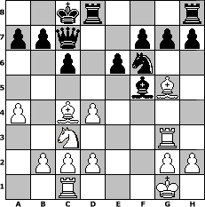 game notation in PGN-format [Event "BDG 2"] [Site "www.myChess.de"] [Date "2015.01.11"] [Round "1"] [White "Caligula"] [Black "freizeitspieler"] [ECO "D00"] [WhitemyELO "1343"] [BlackmyELO "1588"] [Result "0-1"] [TimeControl "10/2592000"] [WhiteDays "60"] [BlackDays "59"] [MyChessNo "97538"] 1. d4 d5 2. e4 dxe4 3. Nc3 Nf6 4. Bc4 c6 5. f3 exf3 6. Nxf3 Bg4 7. O-O e6 8. Bg5 Nbd7 9. Qd3 Qc7 10. a4 Bd6 11. Ne5 Nxe5 12. Qg3 Nf3+ 13. Rxf3 Bxg3 14. Rxg3 Bf5 15. Rc1 O-O-O 0-1 position notation in FEN-format 2kr3r/ppq2ppp/2p1pn2/5bB1/P1BP4/2N3R1/1PPP2PP/2R3K1 - - - 3 16 Captured white pieces: Captured black pieces: Click on a captured piece in order to display the desired move!