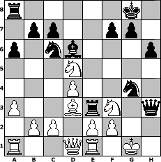 game notation in PGN-format [Event "Sommer 2019"] [Site "www.myChess.de"] [Date "2019.07.17"] [Round "1"] [White "UPS"] [Black "Ziegert"] [ECO "C01"] [WhitemyELO "1674"] [BlackmyELO "1762"] [Result "0-1"] [TimeControl "10/2592000"] [WhiteDays "40"] [BlackDays "16"] [MyChessNo "115364"] 1. e4 e6 2. d4 d5 3. exd5 exd5 4. Nc3 Nf6 5. Bg5 Be6 6. Nf3 a6 7. Bd3 h6 8. Be3 Nc6 9. a3 Bd6 10. h3 O-O 11. O-O Qc8 12. Kh1 Bxh3 13. gxh3 Qxh3+ 14. Kg1 Rfe8 15. Re1 Ng4 16. Nxd5 Rxe3 0-1 position notation in FEN-format r5k1/1pp2pp1/p1nb3p/3N4/3P2n1/P2BrN1q/1PP1PP2/R2QR1K1 - - - 0 17 Captured white pieces: Captured black pieces: Click on a captured piece in order to display the desired move!
