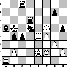 game notation in PGN-format [Event "Godzilla Open - Gruppe B"] [Site "www.myChess.de"] [Date "2014.04.01"] [Round "1"] [White "hubi"] [Black "deepsabel"] [ECO "C63"] [WhitemyELO "1829"] [BlackmyELO "2040"] [Result "1-0"] [TimeControl "10/2592000"] [WhiteDays "29"] [BlackDays "30"] [MyChessNo "93816"] 1. e4 e5 2. Nf3 Nc6 3. Bb5 f5 4. Nc3 fxe4 5. Nxe4 d5 6. Nxe5 dxe4 7. Nxc6 Qg5 8. Qe2 Nf6 9. Nxa7+ Bd7 10. Bxd7+ Nxd7 11. f4 Qc5 12. Nb5 Qxc2 13. d4 Bb4+ 14. Kf2 Qxe2+ 15. Kxe2 O-O-O 16. a3 Be7 17. Be3 Nb6 18. Rhd1 Nd5 19. Nc3 Rhe8 20. a4 c6 21. a5 Kb8 22. a6 b6 23. Rdc1 Rc8 24. g3 Ka7 25. Bg1 Bf8 26. Nd1 h5 27. Ne3 b5 28. Bf2 Bb4 29. Rc2 Red8 30. Rac1 Ne7 31. d5 c5 32. Rd1 Rd6 33. Rcc1 Kxa6 34. Nc2 Ba5 35. Ra1 b4 36. Ne3 c4 37. Rd4 Kb5 38. Rxe4 Nxd5 39. Nf5 1-0 position notation in FEN-format 2r5/6p1/3r4/bk1n1N1p/1pp1RP2/6P1/1P2KB1P/R7 - - - 1 39 Captured white pieces: ![]() ![]() ![]() ![]() ![]() ![]() ![]() ![]() ![]() ![]() ![]() ![]() ![]() ![]() ![]() Captured black pieces: ![]() ![]() ![]() ![]() ![]() ![]() ![]() ![]() ![]() ![]() ![]() ![]() ![]() ![]() ![]() Click on a captured piece in order to display the desired move!
