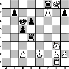 game notation in PGN-format [Event " Chess960 im Sommer, Herbst und Winter"] [Site "www.myChess.de"] [Date "2010.08.04"] [Round "2"] [White "pepo47"] [Black "reisender"] [Variant "Fischerrandom"] [SetUp "1"] [FEN "nrbkqbrn/pppppppp/8/8/8/8/PPPPPPPP/NRBKQBRN w KQkq - 0 1"] [WhitemyELO "1524"] [BlackmyELO "1476"] [Result "1-0"] [TimeControl "10/3456000"] [WhiteDays "118"] [BlackDays "120"] [MyChessNo "67435"] 1. e4 e5 2. Nb3 Ng6 3. d4 Nb6 4. Be3 f6 5. Ng3 d5 6. O-O-O Qa4 7. dxe5 Qxa2 8. Bxb6 axb6 9. Bc4 Nxe5 10. Rxd5+ Bd7 11. Rxd7+ Kxd7 12. Nc5+ bxc5 13. Bxa2 Rh8 14. f4 Ra8 15. Qd1+ Bd6 16. fxe5 Rxa2 17. Qg4+ Kc6 18. exd6 cxd6 19. Kd2 g5 20. e5 Rd8 21. exf6 Rxb2 22. f7 Rb4 23. Qxg5 Rd4+ 24. Ke2 Rf8 25. Qg8 1-0 position notation in FEN-format 5rQ1/1p3P1p/2kp4/2p5/3r4/6N1/2P1K1PP/6R1 - - - 4 25 Captured white pieces: Captured black pieces: Click on a captured piece in order to display the desired move!