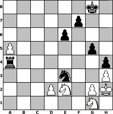 game notation in PGN-format [Event "unter uns Nr. 57 (Osterturnier)"] [Site "www.myChess.de"] [Date "2024.03.30"] [Round "1"] [White "Mynona"] [Black "Campino1986"] [ECO "D00"] [WhitemyELO "1234"] [BlackmyELO "1490"] [Result "0-1"] [TimeControl "10/864000"] [WhiteDays "34"] [BlackDays "18"] [MyChessNo "131756"] 1. d4 d5 2. Bf4 e6 3. a3 Nf6 4. e3 Bd6 5. Bxd6 Qxd6 6. Nf3 O-O 7. c4 c5 8. Nc3 Nc6 9. Nb5 Qd7 10. dxc5 dxc4 11. Qxd7 Bxd7 12. Bxc4 a6 13. Nd6 Na5 14. Bd3 Nb3 15. Bc4 Nxa1 16. O-O Nc2 17. Bd3 Nxe3 18. fxe3 Bb5 19. Bxb5 axb5 20. Nxb7 Rfc8 21. Rc1 Rc7 22. Nd6 Nd7 23. Nxb5 Rxc5 24. Rxc5 Nxc5 25. b4 Ne4 26. Nfd4 Rc8 27. h3 Rc1+ 28. Kh2 h5 29. Nf3 g5 30. Nbd4 h4 31. a4 Ng3 32. Ng1 Nf1+ 33. Kh1 Nxe3 34. Kh2 Rc4 35. Nde2 Rxb4 36. a5 Ra4 0-1 position notation in FEN-format 6k1/5p2/4p3/P5p1/r6p/4n2P/3PN1PK/6N1 - - - 1 37 Captured white pieces: Captured black pieces: Click on a captured piece in order to display the desired move!