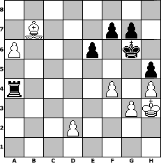 game notation in PGN-format [Event "Die letzten Sommertage!!!"] [Site "www.myChess.de"] [Date "2009.09.12"] [Round "1"] [White "beowulf"] [Black "brucybabe"] [ECO "D30"] [WhitemyELO "1362"] [BlackmyELO "1625"] [Result "0-1"] [TimeControl "10/864000"] [WhiteDays "29"] [BlackDays "40"] [MyChessNo "58940"] 1. d4 d5 2. c4 e6 3. a3 Nf6 4. Nc3 c5 5. cxd5 Nxd5 6. Nxd5 Qxd5 7. Nf3 Nc6 8. e3 cxd4 9. Nxd4 Nxd4 10. Qxd4 Qxd4 11. exd4 Bd7 12. Bd3 Bc6 13. f3 Be7 14. O-O Rd8 15. Be3 a6 16. Rfd1 Bf6 17. Be4 Bd5 18. Rac1 O-O 19. Rc2 Bb3 20. Rdc1 Bxc2 21. Rxc2 Bxd4 22. Bxd4 Rxd4 23. Bxb7 Rd6 24. Kf2 Rb6 25. Be4 Rfb8 26. b4 a5 27. bxa5 Rb2 28. Rxb2 Rxb2+ 29. Kg3 Ra2 30. a6 Rxa3 31. Bb7 Kf8 32. h4 Ra4 33. f4 Ke7 34. Kg4 Kf6 35. g3 Kg6 36. Kh3 h5 0-1 position notation in FEN-format 8/1B3pp1/P3p1k1/7p/r4P1P/6PK/3P4/8 - - - 0 37 Captured white pieces: ![]() ![]() ![]() ![]() ![]() ![]() ![]() ![]() ![]() ![]() ![]() ![]() ![]() ![]() ![]() Captured black pieces: ![]() ![]() ![]() ![]() ![]() ![]() ![]() ![]() ![]() ![]() ![]() ![]() ![]() ![]() ![]() Click on a captured piece in order to display the desired move!