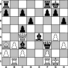 game notation in PGN-format [Event "Unter 1501"] [Site "www.myChess.de"] [Date "2020.08.24"] [Round "1"] [White "gunni50"] [Black "Kerendar"] [ECO "C62"] [WhitemyELO "1241"] [BlackmyELO "1452"] [Result "0-1"] [TimeControl "10/2592000"] [WhiteDays "76"] [BlackDays "90"] [MyChessNo "119098"] 1. e4 e5 2. Nf3 Nc6 3. Bb5 d6 4. Bxc6+ bxc6 5. O-O Nf6 6. Nc3 Be7 7. d3 h6 8. b3 O-O 9. Bb2 Bg4 10. h3 Bh5 11. Qe2 Nd7 12. g4 Bg6 13. d4 Bf6 14. dxe5 Nxe5 15. Nxe5 Bxe5 16. Rad1 Qf6 17. Qa6 Bxc3 18. Ba3 c5 19. Rb1 Bxe4 20. Qc4 Qf3 0-1 position notation in FEN-format r4rk1/p1p2pp1/3p3p/2p5/2Q1b1P1/BPb2q1P/P1P2P2/1R3RK1 - - - 2 21 Captured white pieces: Captured black pieces: Click on a captured piece in order to display the desired move!