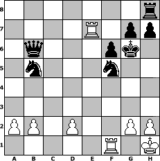game notation in PGN-format [Event "Friends 3"] [Site "www.myChess.de"] [Date "2007.04.13"] [Round "1"] [White "Knight"] [Black "rikilatic"] [ECO "D00"] [WhitemyELO "1260"] [BlackmyELO "1580"] [Result "0-1"] [TimeControl "10/864000"] [WhiteDays "10"] [BlackDays "04"] [MyChessNo "34061"] 1. d4 d5 2. e4 dxe4 3. Nc3 Bf5 4. f3 exf3 5. Qxf3 Bxc2 6. Qxb7 Nd7 7. Nd5 Rc8 8. Bf4 e6 9. Nxc7+ Ke7 10. Nf3 f6 11. Qxa7 Kf7 12. Bc4 Bb4+ 13. Kf1 Bf5 14. d5 exd5 15. Bxd5+ Kf8 16. Be6 Bd3+ 17. Kf2 Bc5+ 18. Qxc5+ Nxc5 19. Bxc8 Qxc8 20. Bd6+ Kf7 21. Rhe1 Ne4+ 22. Kg1 Nxd6 23. Rac1 Bf5 24. Nb5 Qa6 25. Nfd4 Nxb5 26. Nxf5 Qb6+ 27. Kh1 Nh6 28. Re7+ Kg6 29. Rf1 Nxf5 0-1 position notation in FEN-format 7r/4R1pp/1q3pk1/1n3n2/8/8/PP1P2PP/5R1K - - - 0 30 Captured white pieces: Captured black pieces: Click on a captured piece in order to display the desired move!
