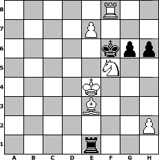 game notation in PGN-format [Event "Gl"] [Site "www.myChess.de"] [Date "2012.06.07"] [Round "1"] [White "murphy12"] [Black "Winston"] [ECO "A00"] [WhitemyELO "1678"] [BlackmyELO "1473"] [Result "1-0"] [TimeControl "10/2592000"] [WhiteDays "150"] [BlackDays "150"] [MyChessNo "82051"] 1. Nc3 e6 2. d4 h6 3. e4 a6 4. Be3 Bb4 5. Bd3 b5 6. Nge2 Bb7 7. O-O Ne7 8. a3 Ba5 9. b4 Bb6 10. Qd2 d6 11. f4 a5 12. Nxb5 axb4 13. axb4 Rxa1 14. Rxa1 Nd7 15. c4 O-O 16. c5 dxc5 17. bxc5 c6 18. Nd6 Qc7 19. Nxb7 Qxb7 20. cxb6 Nxb6 21. Rb1 Qc7 22. d5 Nd7 23. dxc6 Nf6 24. Rb7 Qd6 25. e5 Qxc6 26. Rxe7 Nd5 27. Be4 Rd8 28. Bxd5 Rxd5 29. Nd4 Qc5 30. Re8+ Kh7 31. Qc2+ Qxc2 32. Nxc2 Kg6 33. Kf2 Ra5 34. Kf3 Ra4 35. Nd4 Ra6 36. g4 Ra1 37. f5+ exf5 38. gxf5+ Kh7 39. e6 fxe6 40. fxe6 Kg6 41. Ke4 Re1 42. Nf5 Kf6 43. e7 g6 44. Rf8+ 1-0 position notation in FEN-format 5R2/4P3/5kpp/5N2/4K3/4B3/7P/4r3 - - - 1 44 Captured white pieces: ![]() ![]() ![]() ![]() ![]() ![]() ![]() ![]() ![]() ![]() ![]() ![]() ![]() ![]() ![]() Captured black pieces: ![]() ![]() ![]() ![]() ![]() ![]() ![]() ![]() ![]() ![]() ![]() ![]() ![]() ![]() ![]() Click on a captured piece in order to display the desired move!
