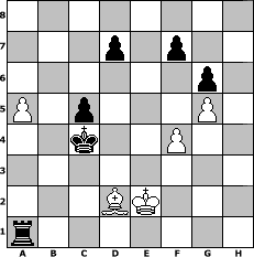game notation in PGN-format [Event "my schach.de darf nicht einschlafen!!"] [Site "www.myChess.de"] [Date "2018.08.17"] [Round "1"] [White "Steffi"] [Black "Joschi"] [ECO "A57"] [WhitemyELO "1549"] [BlackmyELO "1557"] [Result "0-1"] [TimeControl "10/1728000"] [WhiteDays "20"] [BlackDays "20"] [MyChessNo "112870"] 1. d4 Nf6 2. c4 c5 3. d5 b5 4. cxb5 a6 5. d6 exd6 6. Nc3 Qa5 7. Qc2 axb5 8. Bd2 Qb6 9. e3 Be7 10. Bxb5 O-O 11. Nf3 Nc6 12. O-O Ba6 13. Bxa6 Rxa6 14. a3 Rb8 15. Rfb1 Ne5 16. Ng5 h6 17. Nd5 Qd8 18. Nxf6+ Bxf6 19. Qh7+ Kf8 20. Qh8+ Ke7 21. Qxd8+ Rxd8 22. Ne4 Rb8 23. Bc3 Ng4 24. Nxf6 Nxf6 25. h3 g6 26. f3 Nd5 27. Bd2 h5 28. e4 Nb6 29. g4 hxg4 30. hxg4 Nc4 31. Bc3 Rb3 32. f4 Ra7 33. g5 Ke6 34. Kf2 Nxa3 35. Rxa3 Raxa3 36. bxa3 Rxb1 37. a4 Rc1 38. Bd2 Ra1 39. a5 d5 40. exd5+ Kxd5 41. Ke2 Kc4 0-1 position notation in FEN-format 8/3p1p2/6p1/P1p3P1/2k2P2/8/3BK3/r7 - - - 2 42 Captured white pieces: Captured black pieces: Click on a captured piece in order to display the desired move!