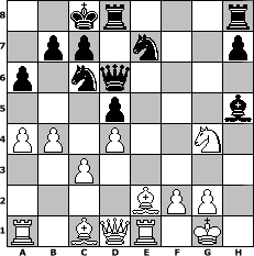 game notation in PGN-format [Event "Anti Fritz8 Turnier"] [Site "www.myChess.de"] [Date "2006.05.02"] [Round "2"] [White "Caligula"] [Black "blotto"] [ECO "C01"] [WhitemyELO "1493"] [BlackmyELO "1582"] [Result "1-0"] [TimeControl "10/864000"] [WhiteDays "10"] [BlackDays "00"] [MyChessNo "25103"] 1. e4 e6 2. d4 d5 3. exd5 exd5 4. Nf3 Bg4 5. Be2 Bd6 6. h3 Bh5 7. Nc3 Ne7 8. O-O Nbc6 9. Nb5 a6 10. Nxd6+ Qxd6 11. Re1 O-O-O 12. c3 f6 13. b4 g5 14. a4 g4 15. Nh2 f5 16. hxg4 fxg4 17. Nxg4 1-0 position notation in FEN-format 2kr3r/1pp1n2p/p1nq4/3p3b/PP1P2N1/2P5/4BPP1/R1BQR1K1 - - - 0 17 Captured white pieces: Captured black pieces: Click on a captured piece in order to display the desired move!