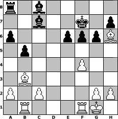 game notation in PGN-format [Event "Wrixum - Open die X"] [Site "www.myChess.de"] [Date "2012.10.06"] [Round "1"] [White "Ziegert"] [Black "beowulf"] [ECO "B34"] [WhitemyELO "1465"] [BlackmyELO "1412"] [Result "1-0"] [TimeControl "10/2592000"] [WhiteDays "17"] [BlackDays "84"] [MyChessNo "84286"] 1. e4 c5 2. Nf3 Nc6 3. d4 cxd4 4. Nxd4 g6 5. Nc3 Bg7 6. Nb3 e6 7. Be3 Nge7 8. Be2 d5 9. exd5 Nxd5 10. Nxd5 Qxd5 11. O-O Qxd1 12. Raxd1 Bxb2 13. Bb5 Ke7 14. Bc5+ Kf6 15. Rb1 Be5 16. f4 Bc7 17. Nd4 Nxd4 18. Bxd4+ Ke7 19. Bxh8 f6 20. Bg7 a6 21. Ba4 b5 22. Bb3 Kf7 23. Bh6 1-0 position notation in FEN-format r1b5/2b2k1p/p3pppB/1p6/5P2/1B6/P1P3PP/1R3RK1 - - - 3 23 Captured white pieces: Captured black pieces: Click on a captured piece in order to display the desired move!