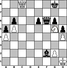 game notation in PGN-format [Event "Wrixum - Open die X"] [Site "www.myChess.de"] [Date "2012.10.06"] [Round "1"] [White "Winston"] [Black "Seneca"] [ECO "A00"] [WhitemyELO "1391"] [BlackmyELO "1531"] [Result "1/2-1/2"] [TimeControl "10/2592000"] [WhiteDays "179"] [BlackDays "116"] [MyChessNo "84257"] 1. a4 d6 2. e3 Nf6 3. h3 g6 4. Nf3 c5 5. d4 cxd4 6. exd4 Bg7 7. Nc3 a6 8. Be3 Nc6 9. Qd2 Bd7 10. Be2 O-O 11. O-O Nb4 12. Na2 Nbd5 13. b3 Nxe3 14. fxe3 Ne4 15. Qe1 Rc8 16. Bd3 d5 17. c4 Bf5 18. Nb4 dxc4 19. Bxc4 Nd6 20. Bd5 Be4 21. Bxe4 Nxe4 22. Nd3 Qd5 23. b4 e6 24. Nc5 Rc7 25. Nxe4 Qxe4 26. Kh1 Rfc8 27. Ng5 Qd5 28. Nf3 Rc3 29. Rd1 Qb3 30. Qh4 Rxe3 31. Ng5 h6 32. Nxf7 h5 33. Qf4 Rd3 34. Nh6+ Kh7 35. Rxd3 Qxd3 36. Nf7 Rf8 37. Qc1 Qxd4 38. Ng5+ Kg8 39. Rxf8+ Bxf8 40. Qb1 Qf6 41. Nf3 Kh7 42. b5 a5 43. Qd1 b6 44. h4 Bc5 45. Qc1 Bf2 46. Ng5+ Kg7 47. Qc7+ Kg8 48. Qc8+ Kg7 49. Qd7+ Kg8 50. Qc8+ 1/2-1/2 position notation in FEN-format 2Q3k1/8/1p2pqp1/pP4Np/P6P/8/5bP1/7K - - - 12 50 Captured white pieces: Captured black pieces: Click on a captured piece in order to display the desired move!