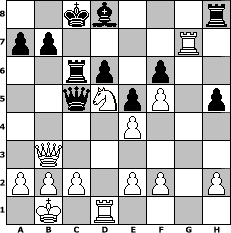 game notation in PGN-format [Event "Aufs neue Jahr!!!"] [Site "www.myChess.de"] [Date "2016.01.06"] [Round "1"] [White "UPS"] [Black "Steffi"] [ECO "C65"] [WhitemyELO "1632"] [BlackmyELO "1564"] [Result "1-0"] [TimeControl "10/2592000"] [WhiteDays "64"] [BlackDays "69"] [MyChessNo "102033"] 1. e4 e5 2. Nf3 Nc6 3. Bb5 Nf6 4. Nc3 d6 5. d4 Bd7 6. d5 Ne7 7. Bxd7+ Qxd7 8. Bg5 h6 9. Bxf6 gxf6 10. Nh4 Ng6 11. Nf5 O-O-O 12. g3 Ne7 13. g4 Nxf5 14. gxf5 c6 15. dxc6 Qxc6 16. Qd3 Qb6 17. O-O-O Bg7 18. Rhf1 h5 19. Kb1 Rd7 20. Nd5 Qc5 21. Qg3 Bh6 22. Nxf6 Rc7 23. Qd3 Bg5 24. Nd5 Rc6 25. Rg1 Bd8 26. Rg7 f6 27. Qb3 1-0 position notation in FEN-format 2kb3r/pp4R1/2rp1p2/2qNpP1p/4P3/1Q6/PPP1PP1P/1K1R4 - - - 1 27 Captured white pieces: Captured black pieces: Click on a captured piece in order to display the desired move!