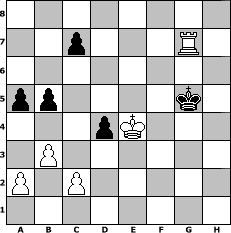 game notation in PGN-format [Event "unter uns Nr. 26"] [Site "www.myChess.de"] [Date "2015.02.14"] [Round "1"] [White "Knight"] [Black "borsti"] [ECO "D00"] [WhitemyELO "1296"] [BlackmyELO "1388"] [Result "1-0"] [TimeControl "10/864000"] [WhiteDays "60"] [BlackDays "60"] [MyChessNo "98102"] 1. d4 d5 2. e4 dxe4 3. Nc3 f5 4. f3 Nf6 5. Be3 e6 6. Bg5 Bb4 7. Qd2 O-O 8. fxe4 Re8 9. e5 Nbd7 10. exf6 Nxf6 11. Nf3 a6 12. Bc4 b5 13. Bb3 Bb7 14. O-O h6 15. Bh4 g5 16. Bxg5 hxg5 17. Nxg5 Bd5 18. Bxd5 Nxd5 19. Qe2 Qxg5 20. Nxd5 exd5 21. Qf3 f4 22. Qxf4 Qxf4 23. Rxf4 Re1+ 24. Rxe1 Bxe1 25. Rg4+ Kh7 26. Rf4 Kg6 27. Rg4+ Kf5 28. Rg7 Ra7 29. g4+ Kf6 30. Rd7 Ke6 31. Rh7 Bd2 32. h4 Bc1 33. b3 Bb2 34. g5 Bxd4+ 35. Kg2 Kf5 36. Rf7+ Kg6 37. Rf4 Bc5 38. Rf6+ Kg7 39. h5 Bd6 40. h6+ Kh7 41. Rf7+ Kg6 42. Rg7+ Kh5 43. h7 Ra8 44. Rg8 Rxg8 45. hxg8=Q d4 46. Kf3 a5 47. g6 Be5 48. Ke4 Bf6 49. Qh7+ Kg5 50. g7 Bxg7 51. Qxg7+ 1-0 position notation in FEN-format 8/2p3R1/8/pp4k1/3pK3/1P6/P1P5/8 - - - 0 51 Captured white pieces: Captured black pieces: Click on a captured piece in order to display the desired move!