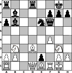 game notation in PGN-format [Event "Eine zentrale Er"] [Site "www.myChess.de"] [Date "2009.05.20"] [Round "1"] [White "rkoelbach"] [Black "kari6katz"] [ECO "C65"] [WhitemyELO "1481"] [BlackmyELO "1635"] [Result "0-1"] [TimeControl "10/2592000"] [WhiteDays "81"] [BlackDays "90"] [MyChessNo "55927"] 1. e4 e5 2. Nf3 Nc6 3. Bb5 Nf6 4. O-O Bc5 5. c3 d6 6. d4 Bb6 7. d5 a6 8. Ba4 Nxe4 9. dxc6 O-O 10. Nbd2 Nc5 11. cxb7 Bxb7 12. Bc2 e4 13. Nd4 d5 14. N2b3 Ne6 15. Be3 Qf6 16. f4 c5 17. Ne2 d4 18. cxd4 cxd4 19. Bf2 Rfd8 20. Ng3 e3 21. Be1 d3 22. Bxd3 e2+ 0-1 position notation in FEN-format r2r2k1/1b3ppp/pb2nq2/8/5P2/1N1B2N1/PP2p1PP/R2QBRK1 - - - 0 23 Captured white pieces: Captured black pieces: Click on a captured piece in order to display the desired move!