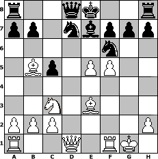 game notation in PGN-format [Event "In diesem Sommer gehts noch mal heiss her"] [Site "www.myChess.de"] [Date "2024.07.20"] [Round "1"] [White "Grubengeist"] [Black "Seneca"] [ECO "C62"] [WhitemyELO "2112"] [BlackmyELO "1553"] [Result "1-0"] [TimeControl "10/2592000"] [WhiteDays "58"] [BlackDays "60"] [MyChessNo "132119"] 1. e4 e5 2. Nf3 Nc6 3. Bb5 d6 4. d4 Bd7 5. Nc3 exd4 6. Nxd4 Ne5 7. O-O c6 8. Be2 Nf6 9. f4 Ng6 10. Be3 Be7 11. g4 c5 12. Nf5 Bxf5 13. gxf5 Nf8 14. Bb5+ N8d7 15. e5 dxe5 16. fxe5 1-0 position notation in FEN-format r2qk2r/pp1nbppp/5n2/1Bp1PP2/8/2N1B3/PPP4P/R2Q1RK1 - kq - 0 16 Captured white pieces: Captured black pieces: Click on a captured piece in order to display the desired move!