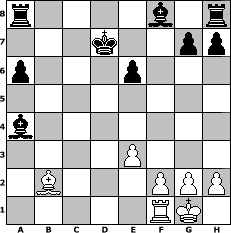 game notation in PGN-format [Event "Kellertunier"] [Site "www.myChess.de"] [Date "2005.08.15"] [Round "2"] [White "MaxPayne"] [Black "crca108"] [ECO "D10"] [WhitemyELO "1406"] [BlackmyELO "1396"] [Result "0-1"] [TimeControl "10/864000"] [WhiteDays "10"] [BlackDays "10"] [MyChessNo "16257"] 1. d4 d5 2. c4 c6 3. Nc3 Bf5 4. Nf3 dxc4 5. e3 b5 6. a4 Qa5 7. Bd2 e6 8. Nxb5 Qb6 9. Bxc4 cxb5 10. Bxb5+ Nd7 11. Ne5 Ngf6 12. O-O a6 13. Bxd7+ Nxd7 14. Nxd7 Kxd7 15. Rc1 Qxb2 16. Rb1 Bxb1 17. d5 Bc2 18. dxe6+ fxe6 19. Bc3+ Bxd1 20. Bxb2 Bxa4 0-1 position notation in FEN-format r4b1r/3k2pp/p3p3/8/b7/4P3/1B3PPP/5RK1 - - - 0 21 Captured white pieces: ![]() ![]() ![]() ![]() ![]() ![]() ![]() ![]() ![]() ![]() ![]() ![]() ![]() ![]() ![]() Captured black pieces: ![]() ![]() ![]() ![]() ![]() ![]() ![]() ![]() ![]() ![]() ![]() ![]() ![]() ![]() ![]() Click on a captured piece in order to display the desired move!