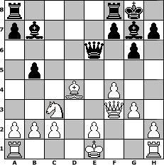 game notation in PGN-format [Event "my schach.de darf nicht einschlafen!!"] [Site "www.myChess.de"] [Date "2018.08.17"] [Round "1"] [White "kalle"] [Black "Seneca"] [ECO "B09"] [WhitemyELO "1688"] [BlackmyELO "1469"] [Result "0-1"] [TimeControl "10/1728000"] [WhiteDays "09"] [BlackDays "17"] [MyChessNo "112887"] 1. e4 d6 2. d4 Nf6 3. Nc3 g6 4. f4 Bg7 5. Nf3 c6 6. g3 O-O 7. Bg2 b5 8. e5 dxe5 9. Nxe5 Nd5 10. Nxc6 Nxc6 11. Bxd5 Bb7 12. Qf3 Qb6 13. Be3 e6 14. Bxe6 Nxd4 15. Bxd4 Qxe6+ 0-1 position notation in FEN-format r4rk1/pb3pbp/4q1p1/1p6/3B1P2/2N2QP1/PPP1P2P/R3K2R - KQ - 0 16 Captured white pieces: Captured black pieces: Click on a captured piece in order to display the desired move!