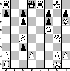 game notation in PGN-format [Event "Dabei ist alles 2"] [Site "www.myChess.de"] [Date "2008.04.04"] [Round "1"] [White "Naunhofer"] [Black "Steppenwolf"] [ECO "D20"] [WhitemyELO "1675"] [BlackmyELO "1435"] [Result "1-0"] [TimeControl "10/864000"] [WhiteDays "10"] [BlackDays "10"] [MyChessNo "44049"] 1. d4 d5 2. c4 dxc4 3. Nc3 Nf6 4. Nf3 Bg4 5. Ne5 Nc6 6. f3 Bf5 7. Nxc6 bxc6 8. e4 Bg6 9. Bxc4 e6 10. Bg5 Bb4 11. e5 Bxc3+ 12. bxc3 O-O 13. exf6 gxf6 14. Bh6 Re8 15. O-O e5 16. f4 exd4 17. f5 Bxf5 18. Rxf5 dxc3 19. Qg4+ 1-0 position notation in FEN-format r2qr1k1/p1p2p1p/2p2p1B/5R2/2B3Q1/2p5/P2P2PP/R5K1 - - - 1 19 Captured white pieces: Captured black pieces: Click on a captured piece in order to display the desired move!