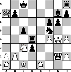 game notation in PGN-format [Event "Ja, is denn heut scho Weihnachten?"] [Site "www.myChess.de"] [Date "2014.12.06"] [Round "1"] [White "Schefsche"] [Black "haggard"] [ECO "B20"] [WhitemyELO "1378"] [BlackmyELO "1992"] [Result "0-1"] [TimeControl "10/2592000"] [WhiteDays "84"] [BlackDays "90"] [MyChessNo "97054"] 1. e4 c5 2. Bc4 Nc6 3. Nf3 g6 4. d3 Bg7 5. Ng5 e6 6. Qf3 f6 7. Nh3 d5 8. exd5 Nd4 9. Qd1 exd5 10. c3 Qe7+ 11. Kf1 dxc4 12. cxd4 Bxh3 13. gxh3 O-O-O 14. Kg2 Rxd4 15. Qa4 cxd3 16. Qxa7 Qe4+ 17. f3 Qe2+ 18. Kg3 Qe5+ 19. f4 Qd6 20. h4 Ne7 21. Nc3 Nf5+ 22. Kg4 Qc6 23. Re1 Qg2# 0-1 position notation in FEN-format 2k4r/Qp4bp/5pp1/2p2n2/3r1PKP/2Np4/PP4qP/R1B1R3 - - - 7 24 Captured white pieces: ![]() ![]() ![]() ![]() ![]() ![]() ![]() ![]() ![]() ![]() ![]() ![]() ![]() ![]() ![]() Captured black pieces: ![]() ![]() ![]() ![]() ![]() ![]() ![]() ![]() ![]() ![]() ![]() ![]() ![]() ![]() ![]() Click on a captured piece in order to display the desired move!