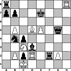 | game notation in PGN-format [Event "Die Weinprobe"] [Site "www.myChess.de"] [Date "2016.09.01"] [Round "1"] [White "Geisterreiter"] [Black "shan"] [ECO "C02"] [WhitemyELO "1343"] [BlackmyELO "1596"] [Result "0-1"] [TimeControl "10/1728000"] [WhiteDays "47"] [BlackDays "60"] [MyChessNo "104711"] 1. e4 e6 2. d4 d5 3. e5 c5 4. Be3 c4 5. a3 Be7 6. Nc3 Nc6 7. Nf3 f6 8. Be2 Nh6 9. Bxh6 gxh6 10. Qd2 Qc7 11. Qxh6 fxe5 12. Qg7 Rf8 13. Ng5 exd4 14. Bh5+ Kd8 15. Ne2 Bb4+ 16. axb4 Qxg7 17. f4 h6 18. h4 hxg5 19. hxg5 e5 20. b5 Nb4 21. O-O-O Bf5 22. fxe5 Qxg5+ 23. Rd2 d3 24. Nc3 dxc2 25. Bf3 Bd3 26. Bxd5 Rf2 27. Rh8+ Ke7 0-1 position notation in FEN-format r6R/pp2k3/8/1P1BP1q1/1np5/2Nb4/1PpR1rP1/2K5 - - - 3 28 Captured white pieces:                              Captured black pieces:                               Click on a captured piece in order to display the desired move!