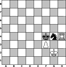game notation in PGN-format [Event "Fr"] [Site "www.myChess.de"] [Date "2016.01.30"] [Round "1"] [White "borsti"] [Black "paul"] [ECO "C65"] [WhitemyELO "1270"] [BlackmyELO "1335"] [Result "1-0"] [TimeControl "10/2592000"] [WhiteDays "240"] [BlackDays "128"] [MyChessNo "102280"] 1. e4 e5 2. Nf3 Nc6 3. Bb5 Nf6 4. d3 Be7 5. Nc3 d5 6. Nxe5 Qd6 7. Bf4 Qe6 8. Nxc6 bxc6 9. Ba4 Qd7 10. Be5 Ng4 11. Bg3 dxe4 12. dxe4 Qxd1+ 13. Rxd1 Bb7 14. f3 Nf6 15. Bxc7 O-O 16. O-O Bb4 17. Ne2 Bc5+ 18. Kh1 Rac8 19. Bd6 Bxd6 20. Rxd6 Ba6 21. Re1 Bb5 22. Nc3 Bxa4 23. Nxa4 Rfd8 24. Rxd8+ Rxd8 25. Kg1 h5 26. h4 Ne8 27. Nc5 Rd2 28. Rc1 Nd6 29. b4 Nc4 30. e5 Nxe5 31. a4 Nd7 32. Ne4 Rd4 33. c3 Rc4 34. Kf2 Ne5 35. Rd1 Kf8 36. Rd8+ Ke7 37. Ra8 f5 38. Rxa7+ Kf8 39. Rc7 fxe4 40. a5 Rxc3 41. a6 Nd3+ 42. Kg3 Nxb4 43. a7 Ra3 44. Kf2 e3+ 45. Ke2 Nd5 46. Rc8+ Kf7 47. a8=Q Nf4+ 48. Ke1 Rxa8 49. Rxa8 Nxg2+ 50. Ke2 Nxh4 51. Kxe3 g5 52. Rc8 Ke6 53. Rxc6+ Kf5 54. Rh6 Ng2+ 55. Kf2 Nf4 56. Kg3 Ke5 57. Rb6 Kf5 58. Rb5+ Kg6 59. Kf2 h4 60. Rb1 h3 61. Kg3 Kh5 62. Rb2 Nd3 63. Rh2 Nf4 64. Rh1 Kg6 65. Kg4 Kf6 66. Rh2 Kg6 67. Ra2 Kf6 68. Ra6+ Ke5 69. Kxg5 Ne2 70. Ra2 Nf4 71. Ra5+ Nd5 72. Ra2 Nc3 73. Rh2 Ne4+ 74. Kg4 Nf6+ 75. Kxh3 Kf4 76. Kg2 Ng4 77. Rh4 1-0 position notation in FEN-format 8/8/8/8/5knR/5P2/6K1/8 - - - 4 77 Captured white pieces: Captured black pieces: Click on a captured piece in order to display the desired move!