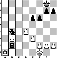 game notation in PGN-format [Event "CM-Turnier-1-2014"] [Site "www.myChess.de"] [Date "2014.01.11"] [Round "1"] [White "FrankB"] [Black "Naunhofer"] [ECO "E10"] [WhitemyELO "1561"] [BlackmyELO "1673"] [Result "0-1"] [TimeControl "10/2592000"] [WhiteDays "30"] [BlackDays "30"] [MyChessNo "92291"] 1. d4 Nf6 2. c4 e6 3. Nf3 d5 4. e3 c6 5. Nc3 Nbd7 6. a3 Be7 7. Bd3 O-O 8. O-O dxc4 9. Bxc4 b5 10. Be2 b4 11. axb4 Bxb4 12. Qa4 Qb6 13. Nd2 a5 14. Nc4 Qc7 15. Bf3 Nd5 16. Na2 N7b6 17. Nxb6 Nxb6 18. Qxc6 Qxc6 19. Bxc6 Rb8 20. Nxb4 axb4 21. b3 Bb7 22. Bxb7 Rxb7 23. Bd2 Nd5 24. Ra4 Rc8 25. Rc1 Rxc1+ 26. Bxc1 f6 27. Bd2 Rc7 28. Kf1 Rc2 29. Bxb4 Rb2 30. Ra1 Nxb4 0-1 position notation in FEN-format 6k1/6pp/4pp2/8/1n1P4/1P2P3/1r3PPP/R4K2 - - - 0 31 Captured white pieces: Captured black pieces: Click on a captured piece in order to display the desired move!