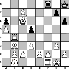 game notation in PGN-format [Event "In Memorium Michael Knopf 4"] [Site "www.myChess.de"] [Date "2015.04.10"] [Round "1"] [White "Schefsche"] [Black "augustus"] [ECO "B20"] [WhitemyELO "1475"] [BlackmyELO "1206"] [Result "1-0"] [TimeControl "10/2592000"] [WhiteDays "80"] [BlackDays "77"] [MyChessNo "98898"] 1. e4 c5 2. Bc4 e6 3. d3 a6 4. Qg4 Nc6 5. Nf3 Nf6 6. Qh4 Nd4 7. Nxd4 b5 8. Bb3 Be7 9. Nf3 Nxe4 10. Qxe4 Ra7 11. O-O f5 12. Qe5 Bf6 13. Qxc5 Rc7 14. Qe3 O-O 15. a4 b4 16. a5 d5 17. Ra4 Bd7 18. Rxb4 Bb5 19. Qxe6+ Kh8 20. Qxf5 Qd6 21. Qg4 Be5 22. g3 Bc6 23. Nxe5 Qxe5 24. Bf4 Qf5 25. Qxf5 Kg8 26. Qe6+ Kh8 27. Bxc7 h6 28. Qxc6 1-0 position notation in FEN-format 5r1k/2B3p1/p1Q4p/P2p4/1R6/1B1P2P1/1PP1PP1P/1N3RK1 - - - 0 28 Captured white pieces: ![]() ![]() ![]() ![]() ![]() ![]() ![]() ![]() ![]() ![]() ![]() ![]() ![]() ![]() ![]() Captured black pieces: ![]() ![]() ![]() ![]() ![]() ![]() ![]() ![]() ![]() ![]() ![]() ![]() ![]() ![]() ![]() Click on a captured piece in order to display the desired move!