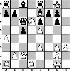 game notation in PGN-format [Event "Ein ganz normales"] [Site "www.myChess.de"] [Date "2007.05.28"] [Round "2"] [White "HPB2005"] [Black "Juliette2103"] [ECO "A46"] [WhitemyELO "2004"] [BlackmyELO "1433"] [Result "1-0"] [TimeControl "10/2592000"] [WhiteDays "61"] [BlackDays "36"] [MyChessNo "35193"] 1. d4 Nf6 2. Nf3 e6 3. c4 d5 4. g3 Nbd7 5. Bg2 Bb4+ 6. Nbd2 O-O 7. O-O c6 8. Qc2 dxc4 9. Nxc4 Re8 10. h3 Nf8 11. a3 Be7 12. e4 Ng6 13. Nfe5 Qxd4 14. Rd1 Qc5 15. Be3 Qb5 16. a4 Qa6 17. Nxg6 hxg6 18. Bf1 c5 19. e5 Nd5 20. Nd6 Nxe3 21. fxe3 Qc6 22. Bg2 1-0 position notation in FEN-format r1b1r1k1/pp2bpp1/2qNp1p1/2p1P3/P7/4P1PP/1PQ3B1/R2R2K1 - - - 2 22 Captured white pieces: Captured black pieces: Click on a captured piece in order to display the desired move!