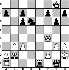 game notation in PGN-format [Event "In Memoriam Paul Keres "] [Site "www.myChess.de"] [Date "2017.04.14"] [Round "1"] [White "Joschi"] [Black "noma"] [ECO "C67"] [WhitemyELO "1582"] [BlackmyELO "1732"] [Result "0-1"] [TimeControl "10/1728000"] [WhiteDays "60"] [BlackDays "60"] [MyChessNo "107714"] 1. e4 e5 2. Nf3 Nc6 3. Bb5 Nf6 4. O-O Nxe4 5. d4 Be7 6. dxe5 O-O 7. Re1 d5 8. exd6 Nxd6 9. Bxc6 bxc6 10. Nc3 Bf6 11. Ne2 Bg4 12. Ng3 Re8 13. Rxe8+ Qxe8 14. c3 Rb8 15. h3 Bxf3 16. Qxf3 Qe1+ 17. Kh2 Re8 18. Nh5 Be5+ 19. g3 g6 20. Nf4 Bxf4 21. Qxf4 Qf1 22. b3 Re1 23. Bb2 Qg1# 0-1 position notation in FEN-format 6k1/p1p2p1p/2pn2p1/8/5Q2/1PP3PP/PB3P1K/R3r1q1 - - - 3 24 Captured white pieces: ![]() ![]() ![]() ![]() ![]() ![]() ![]() ![]() ![]() ![]() ![]() ![]() ![]() ![]() ![]() Captured black pieces: ![]() ![]() ![]() ![]() ![]() ![]() ![]() ![]() ![]() ![]() ![]() ![]() ![]() ![]() ![]() Click on a captured piece in order to display the desired move!