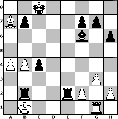 game notation in PGN-format [Event "CAISSA.COM IS DEAD TO ME!"] [Site "www.myChess.de"] [Date "2020.03.28"] [Round "2"] [White "miu"] [Black "martinus"] [ECO "B30"] [WhitemyELO "1563"] [BlackmyELO "1575"] [Result "0-1"] [TimeControl "10/2592000"] [WhiteDays "30"] [BlackDays "30"] [MyChessNo "117728"] 1. e4 c5 2. Nf3 Nc6 3. c3 d6 4. g3 Bg4 5. Bg2 e5 6. a4 Nf6 7. d3 Be7 8. Nbd2 d5 9. exd5 Qxd5 10. Nc4 e4 11. Ne3 exf3 12. Nxd5 fxg2 13. Nxf6+ Bxf6 14. Rg1 Bxd1 15. Kxd1 O-O-O 16. Kc2 Ne5 17. Be3 Nxd3 18. Rxg2 c4 19. Rgg1 h6 20. Rad1 Rhe8 21. Bxa7 Re2+ 22. Rd2 Nb4+ 23. cxb4 Rdxd2+ 24. Kb1 Rxb2+ 0-1 position notation in FEN-format 2k5/Bp3pp1/5b1p/8/PPp5/6P1/1r2rP1P/1K4R1 - - - 0 25 Captured white pieces: ![]() ![]() ![]() ![]() ![]() ![]() ![]() ![]() ![]() ![]() ![]() ![]() ![]() ![]() ![]() Captured black pieces: ![]() ![]() ![]() ![]() ![]() ![]() ![]() ![]() ![]() ![]() ![]() ![]() ![]() ![]() ![]() Click on a captured piece in order to display the desired move!