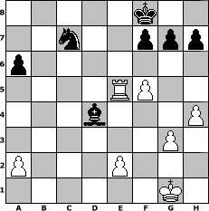 game notation in PGN-format [Event "Festive 23"] [Site "www.myChess.de"] [Date "2023.12.24"] [Round "1"] [White "Hobbykegler"] [Black "beowulf"] [ECO "B30"] [WhitemyELO "1133"] [BlackmyELO "1401"] [Result "0-1"] [TimeControl "10/2592000"] [WhiteDays "27"] [BlackDays "30"] [MyChessNo "131303"] 1. e4 c5 2. Nf3 Nc6 3. Bc4 d6 4. O-O Bg4 5. h3 Bxf3 6. Qxf3 Ne5 7. Qc3 Nf6 8. d3 Nxc4 9. dxc4 e5 10. Rd1 Be7 11. Na3 O-O 12. Nb5 a6 13. Na3 Nxe4 14. Qe3 Nf6 15. Re1 Nh5 16. Bd2 Nf4 17. g3 Ne6 18. h4 d5 19. cxd5 Qxd5 20. c4 Qd4 21. Qxd4 exd4 22. Re5 Rfe8 23. Re1 Bf6 24. Rd5 Rad8 25. Ba5 Rc8 26. f4 Kf8 27. f5 Nc7 28. Rxc5 Na8 29. Rxc8 Rxc8 30. b3 Be7 31. Nc2 b6 32. Bd2 b5 33. Nxd4 bxc4 34. bxc4 Rxc4 35. Re4 Bc5 36. Be3 Nc7 37. Re5 Rxd4 38. Bxd4 Bxd4+ 0-1 position notation in FEN-format 5k2/2n2ppp/p7/4RP2/3b3P/6P1/P3P3/6K1 - - - 0 39 Captured white pieces: Captured black pieces: Click on a captured piece in order to display the desired move!