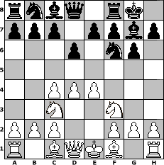 game notation in PGN-format [Event "unter uns"] [Site "www.myChess.de"] [Date "2012.03.11"] [Round "1"] [White "Gauss1233"] [Black "Haki"] [ECO "A10"] [WhitemyELO "1316"] [BlackmyELO "1330"] [Result "0-1"] [TimeControl "10/864000"] [WhiteDays "00"] [BlackDays "10"] [MyChessNo "80541"] 1. c4 d6 2. Nc3 Nf6 3. d4 g6 4. e4 Bg7 5. Nf3 O-O 0-1 position notation in FEN-format rnbq1rk1/ppp1ppbp/3p1np1/8/2PPP3/2N2N2/PPP2PPP/R1BQKB1R - KQ - 3 6 Captured white pieces: Captured black pieces: Click on a captured piece in order to display the desired move!