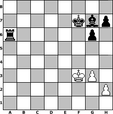 game notation in PGN-format [Event "Kellertunier"] [Site "www.myChess.de"] [Date "2005.08.15"] [Round "2"] [White "crca108"] [Black "Pocket"] [ECO "A41"] [WhitemyELO "1396"] [BlackmyELO "1282"] [Result "0-1"] [TimeControl "10/864000"] [WhiteDays "10"] [BlackDays "08"] [MyChessNo "16264"] 1. d4 d6 2. e4 Nd7 3. Bc4 e5 4. d5 Ngf6 5. Nc3 b6 6. Bg5 Be7 7. Qg4 Nc5 8. Qf3 Bg4 9. Qg3 O-O 10. Bxf6 Bxf6 11. Qxg4 a6 12. a4 b5 13. Bb3 b4 14. Nce2 Rc8 15. Nf3 Nxb3 16. cxb3 c6 17. Rc1 g6 18. Nd2 cxd5 19. Rxc8 Qxc8 20. Qf3 Bg7 21. exd5 Qc2 22. Nc4 Qb1+ 23. Nc1 Qxc1+ 24. Qd1 Qxd1+ 25. Kxd1 Rd8 26. Kc2 f5 27. f3 e4 28. fxe4 fxe4 29. Re1 Re8 30. Nxd6 Rd8 31. Nb7 Rc8+ 32. Kb1 Rc7 33. Nd6 Rd7 34. Nxe4 Rxd5 35. Ng5 Rxg5 36. g3 Rf5 37. Rd1 Rf2 38. Rd6 Rxb2+ 39. Kc1 Rxb3 40. Rxa6 Ra3 41. a5 b3 42. Ra8+ Kf7 43. Rb8 Ra1+ 44. Kd2 b2 45. a6 b1=Q 46. Rxb1 Rxb1 47. Ke2 Ra1 48. Kf3 Rxa6 0-1 position notation in FEN-format 8/5kbp/r5p1/8/8/5KP1/7P/8 - - - 0 49 Captured white pieces: ![]() ![]() ![]() ![]() ![]() ![]() ![]() ![]() ![]() ![]() ![]() ![]() ![]() ![]() ![]() Captured black pieces: ![]() ![]() ![]() ![]() ![]() ![]() ![]() ![]() ![]() ![]() ![]() ![]() ![]() ![]() ![]() Click on a captured piece in order to display the desired move!