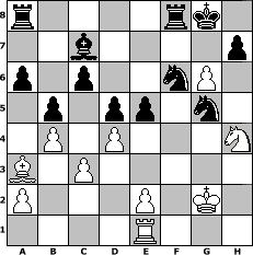 game notation in PGN-format [Event "Die Wikinger XXI. - Qualifikation"] [Site "www.myChess.de"] [Date "2025.08.08"] [Round "1"] [White "Haneken"] [Black "Master1"] [ECO "B12"] [WhitemyELO "1124"] [BlackmyELO "1376"] [Result "0-1"] [TimeControl "10/2592000"] [WhiteDays "30"] [BlackDays "30"] [MyChessNo "133568"] 1. e4 c6 2. d4 d5 3. e5 Bf5 4. Bd3 Bxd3 5. Qxd3 e6 6. Nf3 a6 7. O-O Bb4 8. c3 Ba5 9. b4 Bc7 10. Ba3 Ne7 11. Nbd2 O-O 12. Rae1 b5 13. Ng5 Nf5 14. g4 Qxg5 15. h3 Nh4 16. f4 Qe7 17. g5 Nf5 18. Nf3 Ng3 19. Rf2 Nh5 20. Nh4 Nd7 21. Qf3 g6 22. f5 Qxg5+ 23. Qg4 Qxg4+ 24. hxg4 Ng3 25. Kg2 Ne4 26. Rf4 exf5 27. gxf5 f6 28. fxg6 fxe5 29. Rg4 Ndf6 30. Rg5 Nxg5 0-1 position notation in FEN-format r4rk1/2b4p/p1p2nP1/1p1pp1n1/1P1P3N/B1P5/P3P1K1/4R3 - - - 0 31 Captured white pieces: Captured black pieces: Click on a captured piece in order to display the desired move!