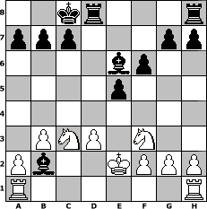 game notation in PGN-format [Event "Aljechin - zum F"] [Site "www.myChess.de"] [Date "2008.10.11"] [Round "1"] [White "Andylein1989"] [Black "Holzhacker"] [ECO "B02"] [WhitemyELO "1688"] [BlackmyELO "2084"] [Result "0-1"] [TimeControl "10/1728000"] [WhiteDays "40"] [BlackDays "37"] [MyChessNo "48736"] 1. e4 Nf6 2. Nc3 e5 3. Bc4 Nxe4 4. Nxe4 d5 5. Bxd5 Qxd5 6. Qf3 Be6 7. Nc3 Qxf3 8. Nxf3 Nc6 9. d3 Nb4 10. Kd2 f6 11. b3 O-O-O 12. Ba3 Nxd3 13. cxd3 Bxa3 14. Ke2 Bb2 0-1 position notation in FEN-format 2kr3r/ppp3pp/4bp2/4p3/8/1PNP1N2/Pb2KPPP/R6R - - - 2 15 Captured white pieces: Captured black pieces: Click on a captured piece in order to display the desired move!