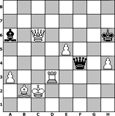 game notation in PGN-format [Event "Wrixum - Open die VI."] [Site "www.myChess.de"] [Date "2009.10.20"] [Round "1"] [White "BobbyF4"] [Black "73DADDELDU37"] [ECO "B20"] [WhitemyELO "1459"] [BlackmyELO "1470"] [Result "1-0"] [TimeControl "10/2592000"] [WhiteDays "30"] [BlackDays "30"] [MyChessNo "60043"] 1. e4 c5 2. Bc4 e6 3. Nc3 Nc6 4. Nf3 Na5 5. Qe2 Be7 6. Ne5 Bf6 7. Ng4 Nc6 8. e5 Be7 9. Ne4 Qc7 10. f4 h5 11. Ne3 Nb4 12. Kd1 a6 13. c3 Nc6 14. d3 b5 15. Bb3 Bb7 16. a3 Na5 17. Bc2 d5 18. Nf2 Bh4 19. d4 cxd4 20. cxd4 Rc8 21. g3 Be7 22. b4 Nc4 23. Nxc4 Qxc4 24. Nd3 Qxd4 25. Bb2 Qe4 26. Re1 Nh6 27. Qf2 Qc4 28. Re2 Nf5 29. Nc5 Bxc5 30. bxc5 Ne7 31. Bd4 Nc6 32. Bb2 d4 33. Rd2 Qxc5 34. Bb3 Rd8 35. Rc1 Qb6 36. h4 a5 37. Rdc2 a4 38. Ba2 b4 39. Rc5 b3 40. Bb1 O-O 41. Bd3 Rd5 42. R5c4 Rc8 43. Rxa4 Ne7 44. Rxc8+ Nxc8 45. Rb4 Qa7 46. Rxb3 Ne7 47. Ke1 Nc6 48. Qe2 g6 49. g4 hxg4 50. Qxg4 Ba6 51. Bxg6 fxg6 52. Qxg6+ Qg7 53. Qxe6+ Kh7 54. Qxd5 Qg1+ 55. Kd2 Qf2+ 56. Kc1 Qf1+ 57. Kc2 d3+ 58. Rxd3 Qxf4 59. Qd7+ Kh6 60. Qxc6+ 1-0 position notation in FEN-format 8/8/b1Q4k/4P3/5q1P/P2R4/1BK5/8 - - - 0 60 Captured white pieces: ![]() ![]() ![]() ![]() ![]() ![]() ![]() ![]() ![]() ![]() ![]() ![]() ![]() ![]() ![]() Captured black pieces: ![]() ![]() ![]() ![]() ![]() ![]() ![]() ![]() ![]() ![]() ![]() ![]() ![]() ![]() ![]() Click on a captured piece in order to display the desired move!