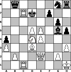 game notation in PGN-format [Event "Human Brain Turnier 2014"] [Site "www.myChess.de"] [Date "2014.06.12"] [Round "1"] [White "Caligula"] [Black "Donnerkeil"] [ECO "C30"] [WhitemyELO "1478"] [BlackmyELO "1300"] [Result "1-0"] [TimeControl "10/2592000"] [WhiteDays "119"] [BlackDays "115"] [MyChessNo "94760"] 1. e4 e5 2. f4 Nc6 3. Nf3 a6 4. fxe5 g6 5. Bc4 Qe7 6. d4 Qb4+ 7. Nbd2 Nh6 8. a3 Qe7 9. O-O b5 10. Bd5 Bb7 11. Re1 Nd8 12. Bxb7 Ra7 13. Bd5 c6 14. Bb3 Ng4 15. Qe2 h5 16. h3 Nh6 17. c4 a5 18. cxb5 a4 19. Bc4 Rc7 20. Bd3 Rb7 21. bxc6 dxc6 22. Nc4 Ng8 23. Nd6+ Kd7 24. Nxb7 Nxb7 25. Bg5 Qe8 26. Rac1 Na5 27. Kh1 Qb8 28. d5 Nb3 29. Rxc6 Nd4 30. Nxd4 Be7 31. Rec1 Bxg5 32. Rc7+ 1-0 position notation in FEN-format 1q4nr/2Rk1p2/6p1/3PP1bp/p2NP3/P2B3P/1P2Q1P1/2R4K - - - 1 32 Captured white pieces: Captured black pieces: Click on a captured piece in order to display the desired move!